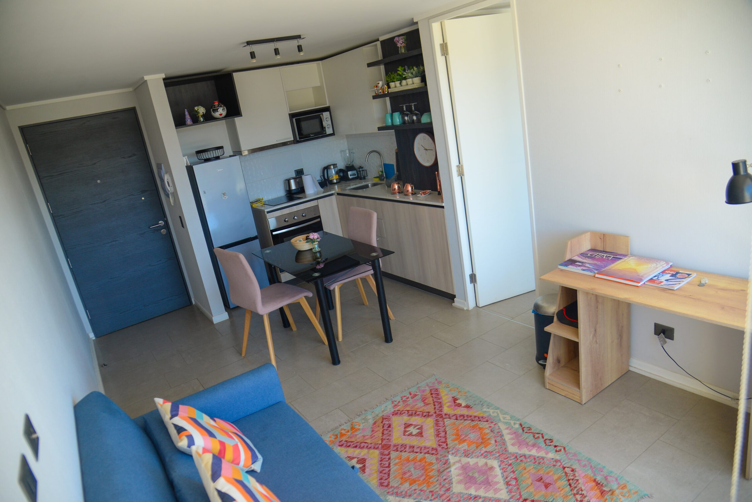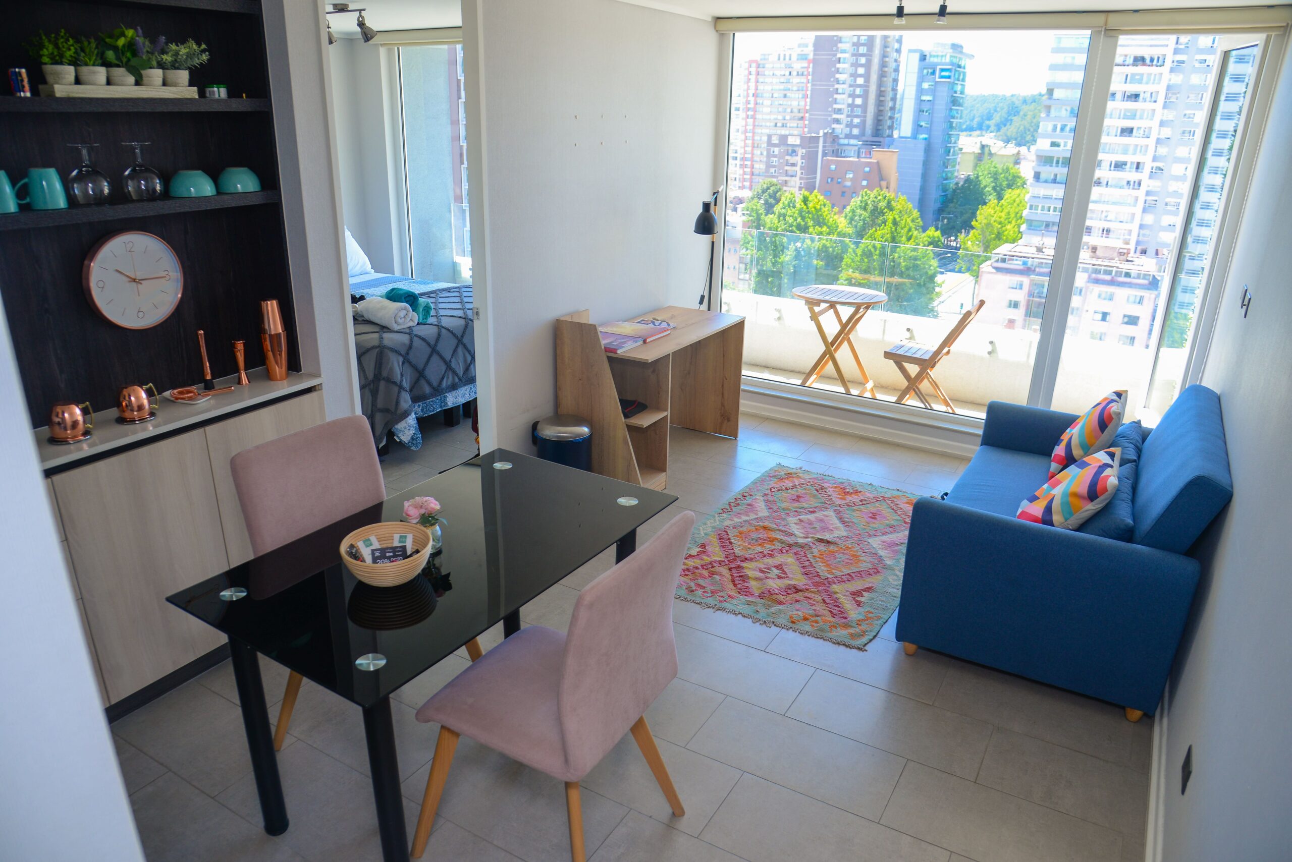 Disfruta de este alojamiento nuevo, céntrico, completamente amoblado y equipado, a pasos de universidades, parque y locomoción. Recorrerás a pie el centro de Concepción, cercano a supermercados, centros comerciales, restaurantes y cafeterías.